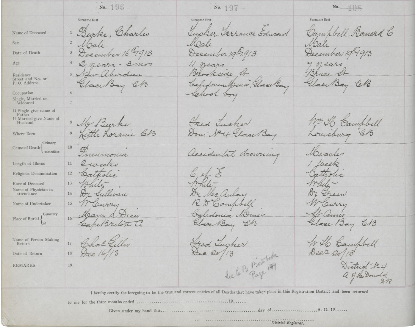 Death Registration: Year: 1913 book: 24 page: 33 number: 196