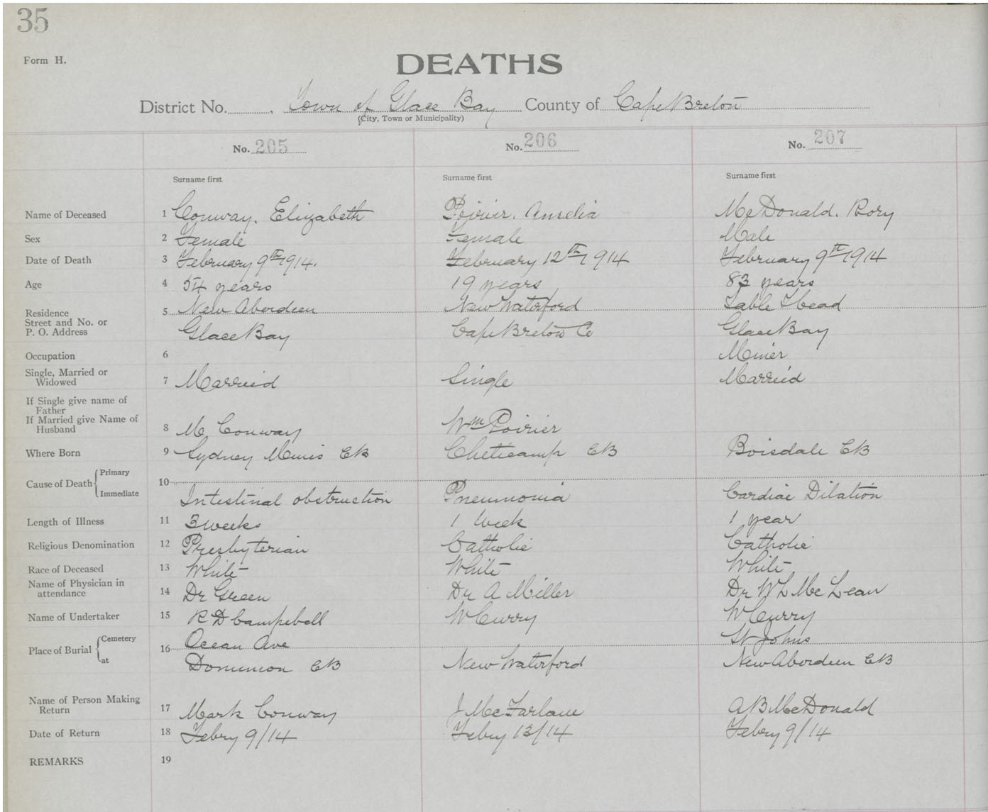 Death Registration: Year: 1914 book: 24 page: 35 number: 205