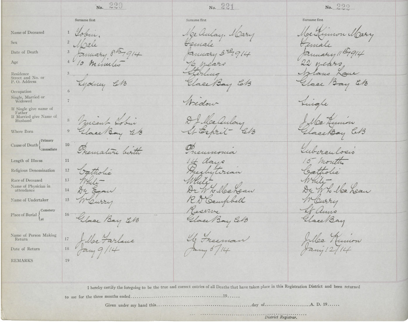 Death Registration: Year: 1914 book: 24 page: 37 number: 220