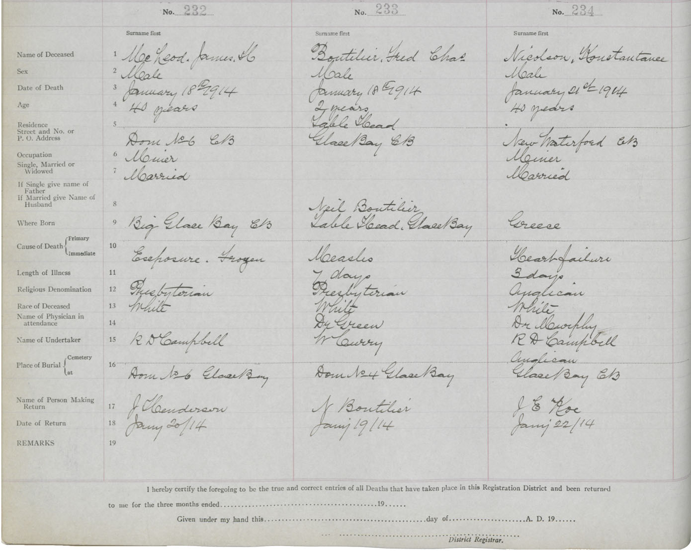 Death Registration: Year: 1914 book: 24 page: 39 number: 232