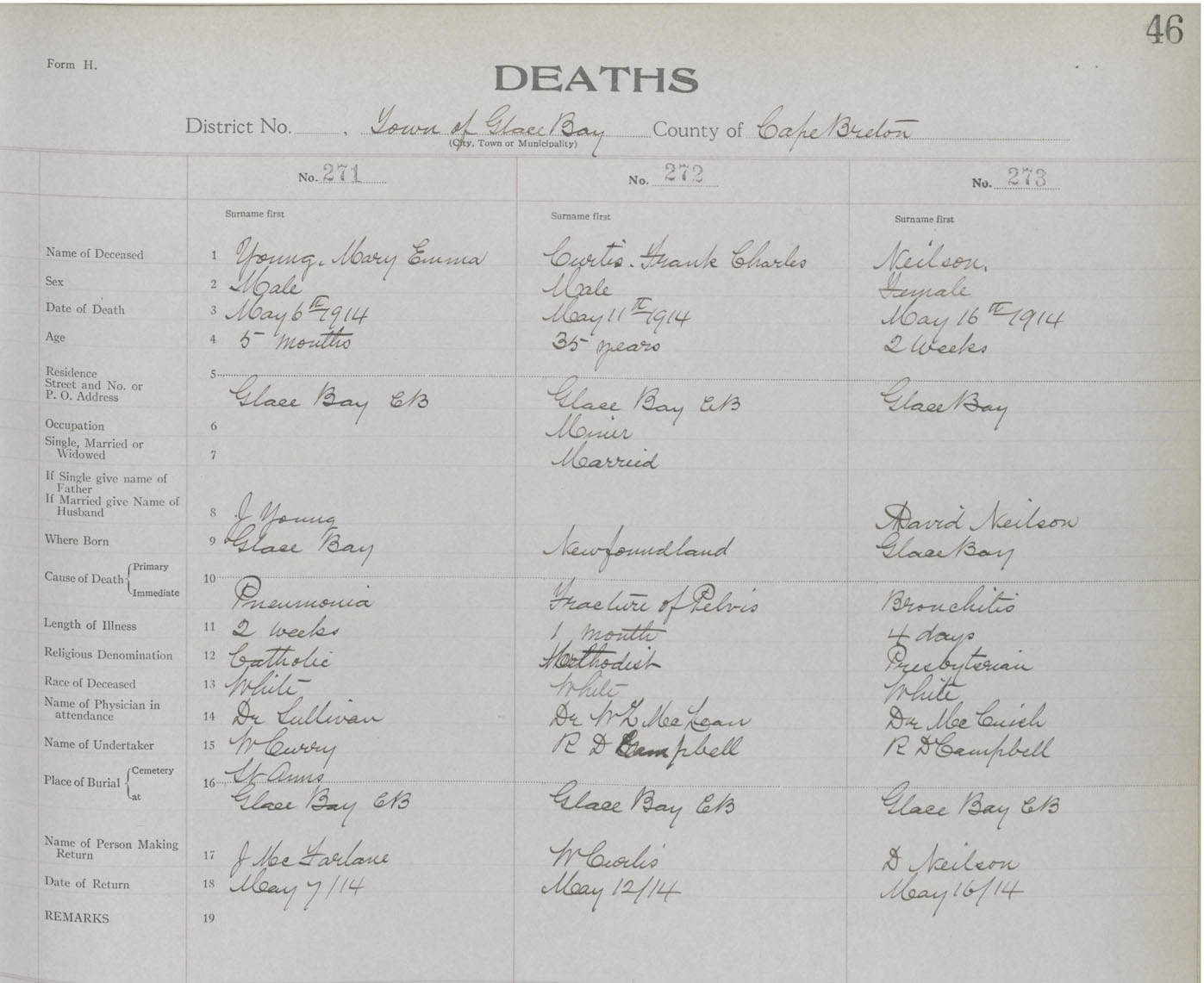 Death Registration: Year: 1914 book: 24 page: 46 number: 271