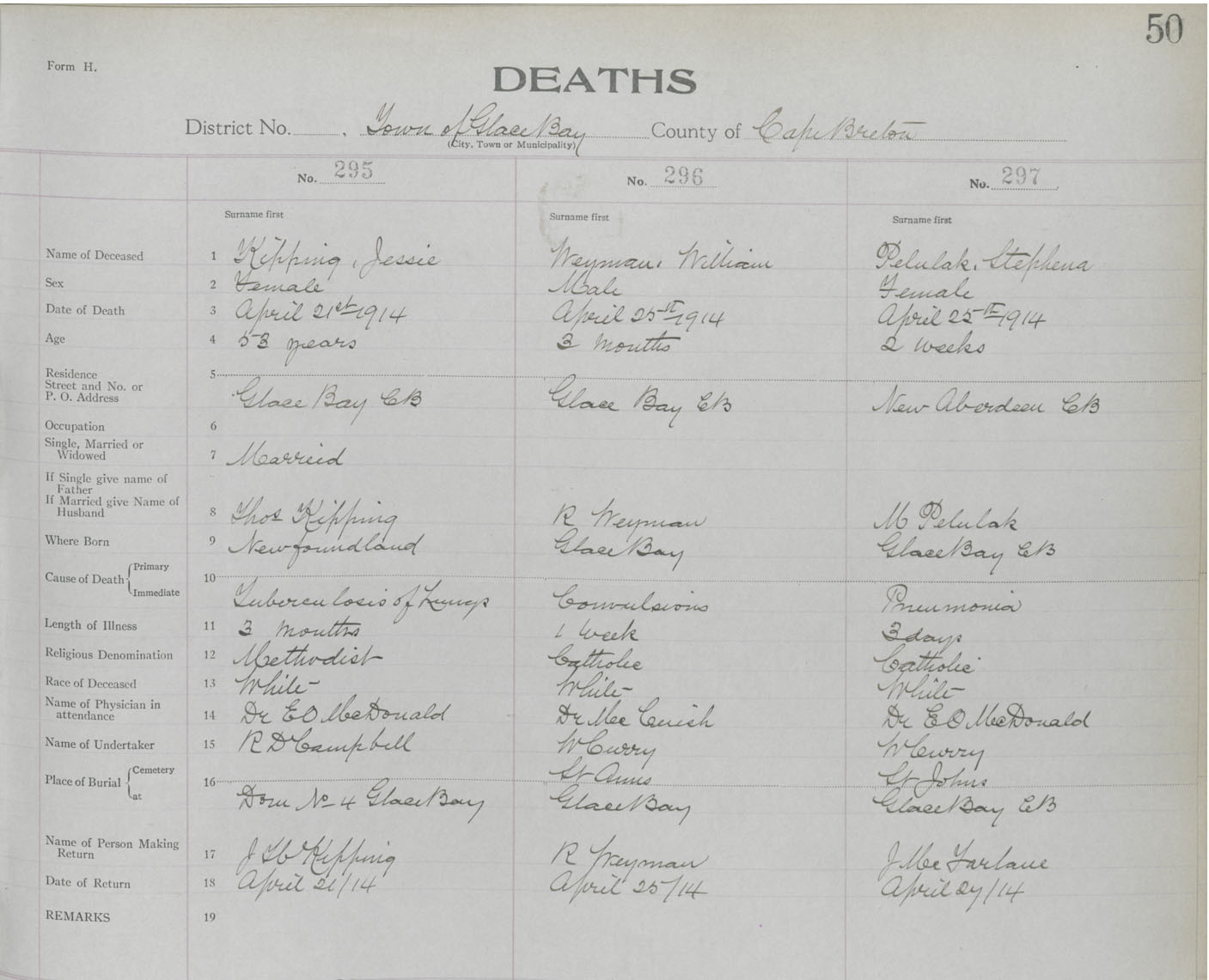 Death Registration: Year: 1914 book: 24 page: 50 number: 295