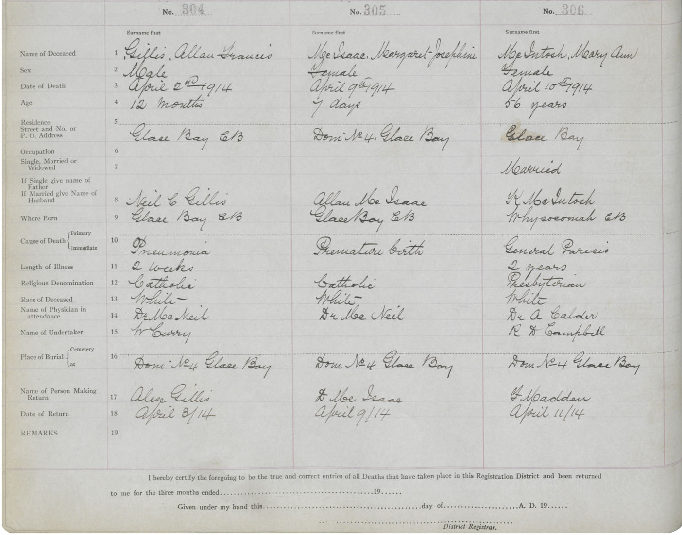 Death Registration: Year: 1914 book: 24 page: 51 number: 304