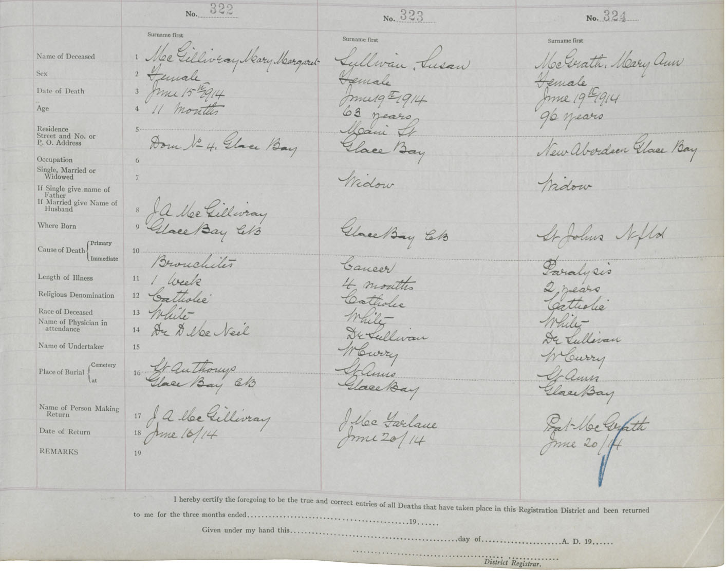 Death Registration: Year: 1914 book: 24 page: 54 number: 322