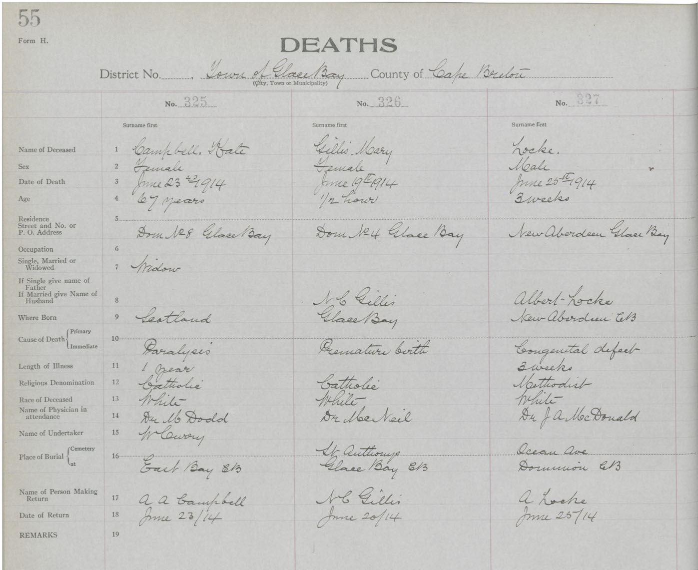 Death Registration: Year: 1914 book: 24 page: 55 number: 325