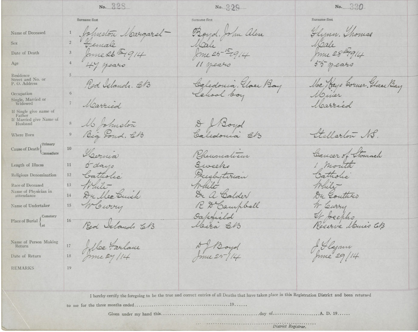 Male Death Registration: Year: 1914 book: 24 page: 55 number: 328