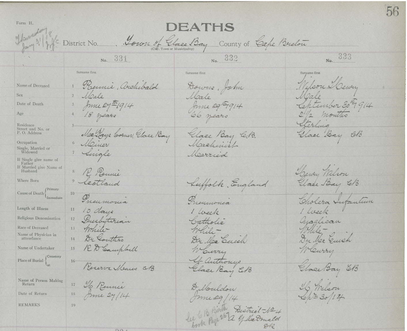 Death Registration: Year: 1914 book: 24 page: 56 number: 331