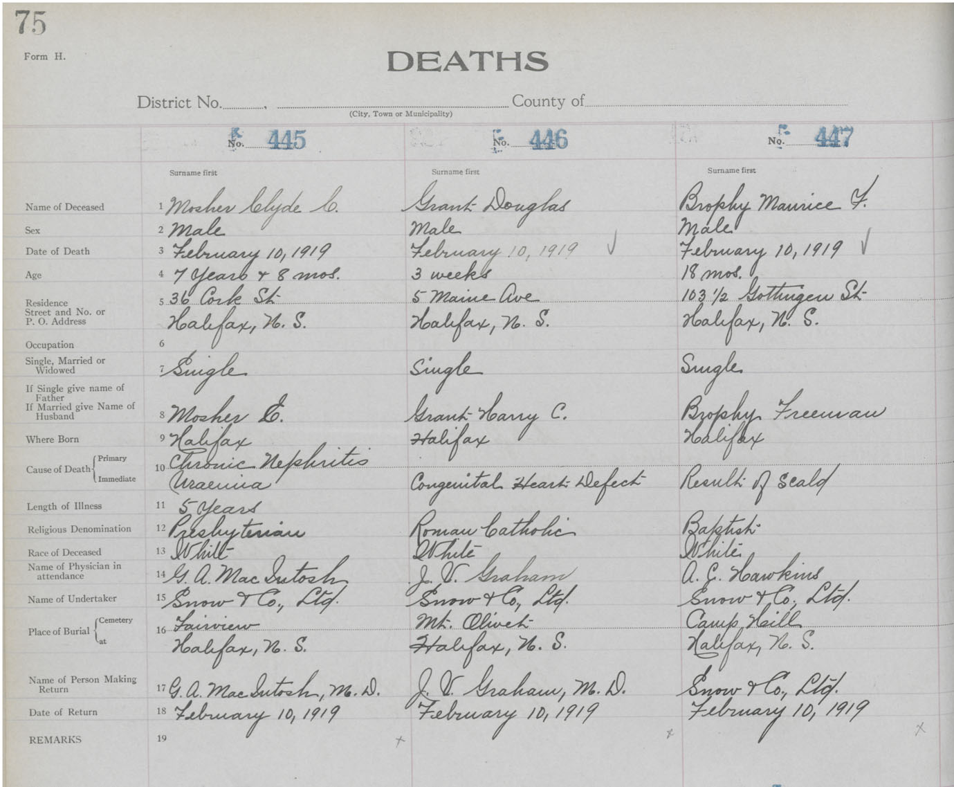 Death Registration: Year: 1919 book: 25 page: 75 number: 447