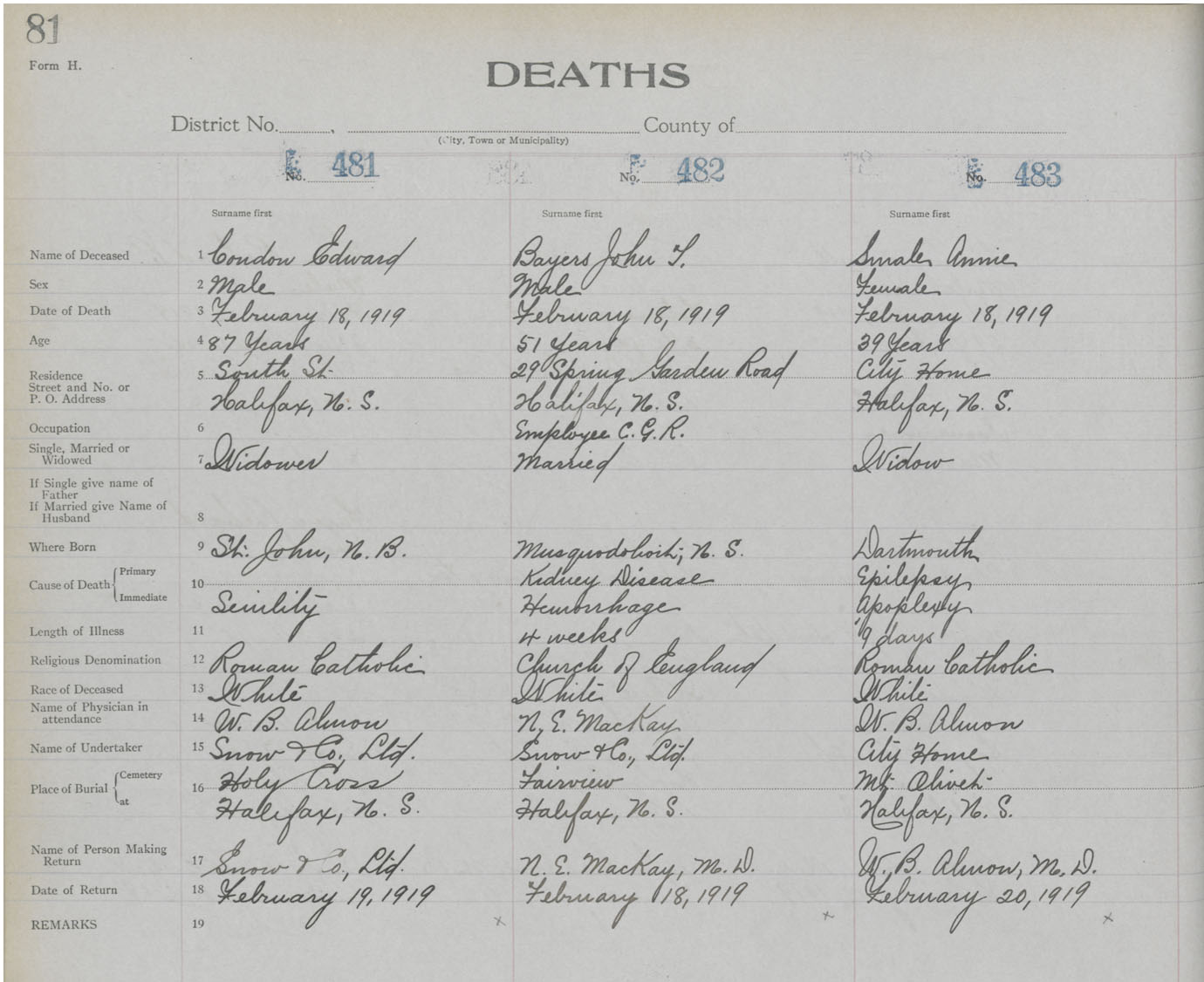Death Registration: Year: 1919 book: 25 page: 81 number: 483