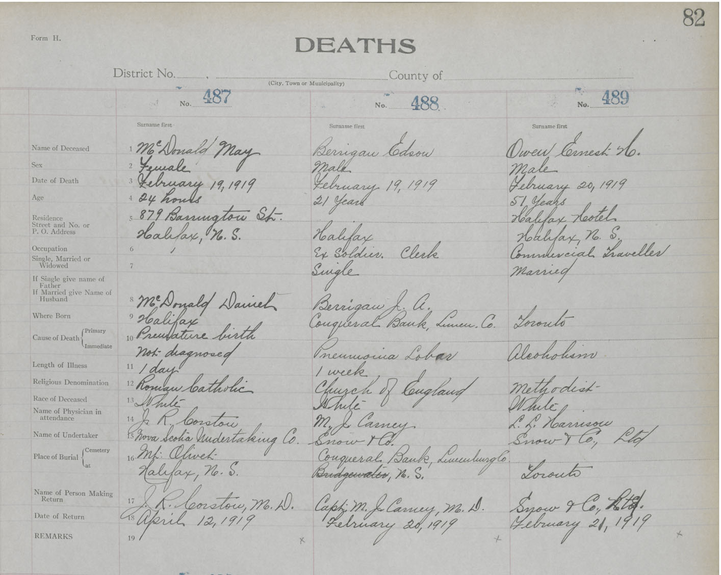 Death Registration: Year: 1919 book: 25 page: 82 number: 489