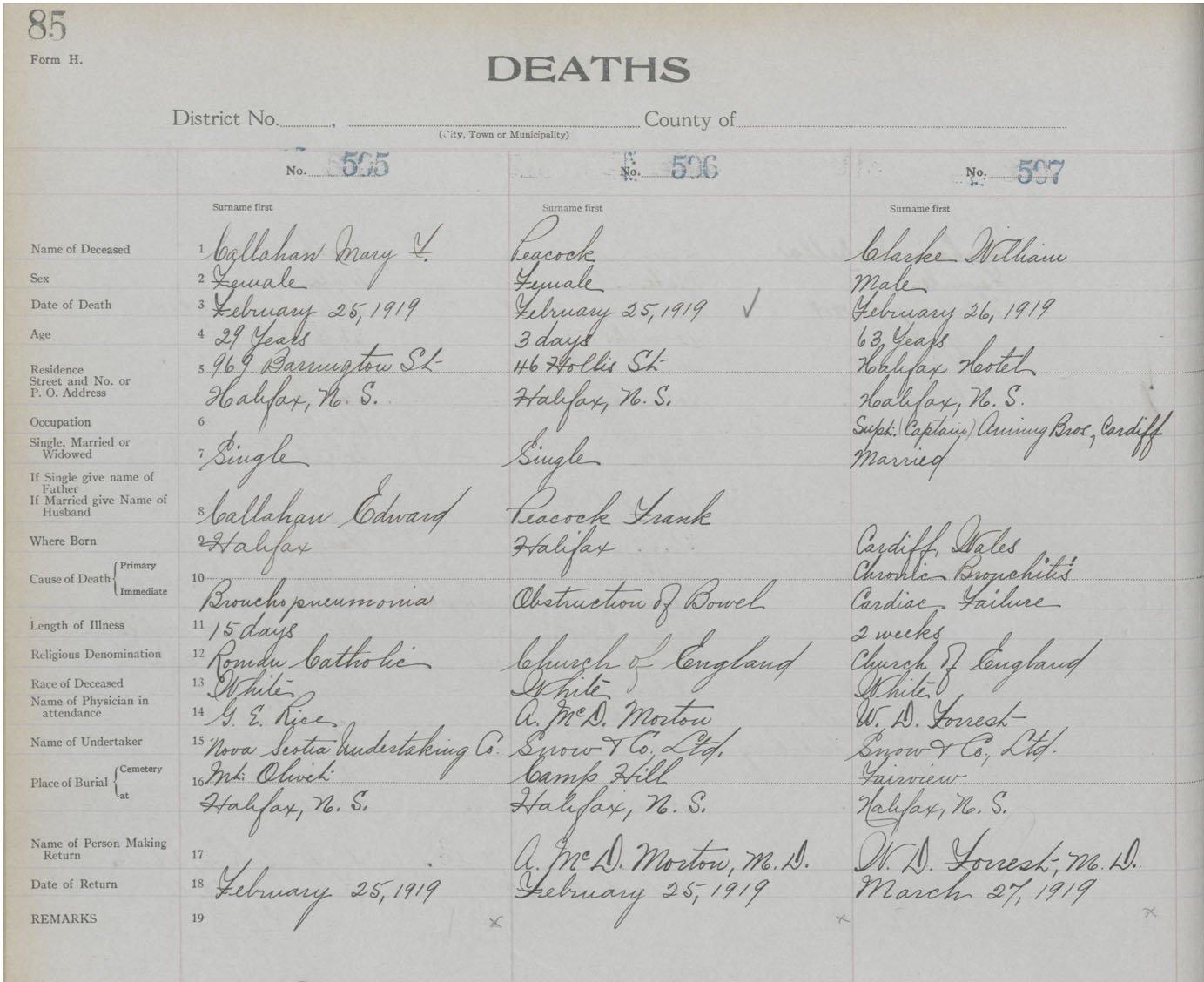 Death Registration: Year: 1919 book: 25 page: 85 number: 507