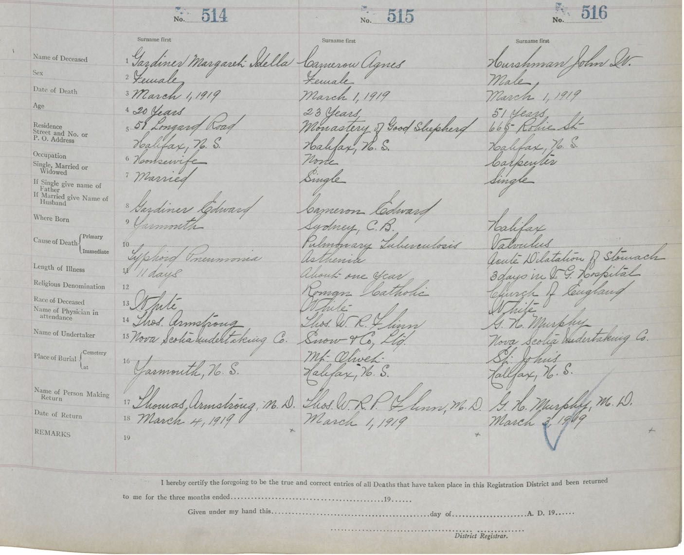 Death Registration: Year: 1919 book: 25 page: 86 number: 516