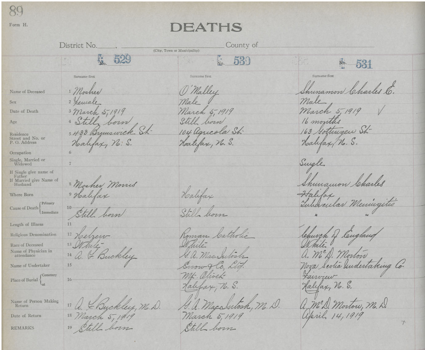 Death Registration: Year: 1919 book: 25 page: 89 number: 531