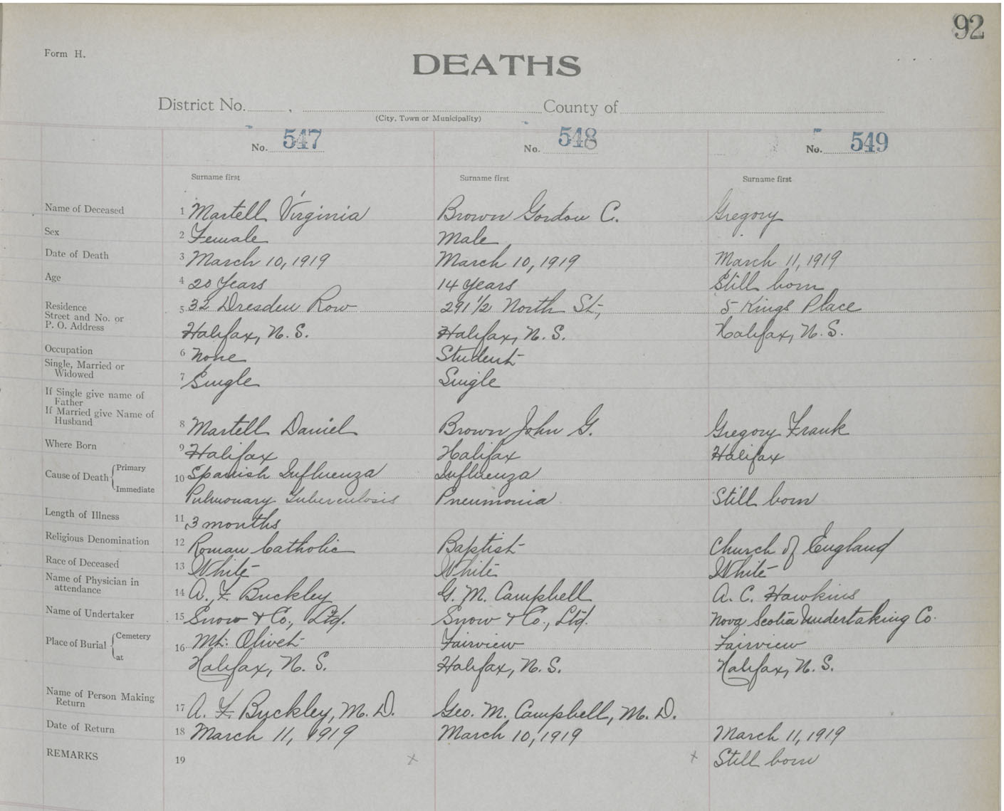 Death Registration: Year: 1919 book: 25 page: 92 number: 549