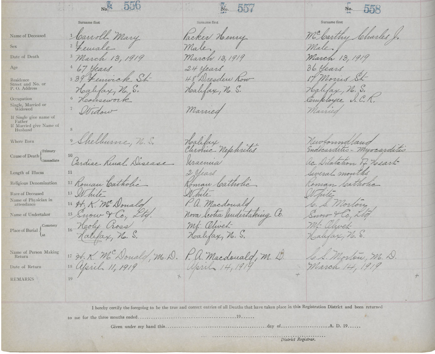 Death Registration: Year: 1919 book: 25 page: 93 number: 558