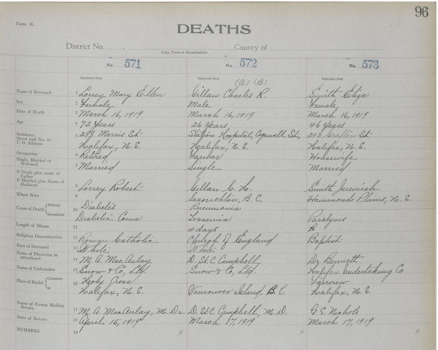 Death Registration: Year: 1919 book: 25 page: 96 number: 573