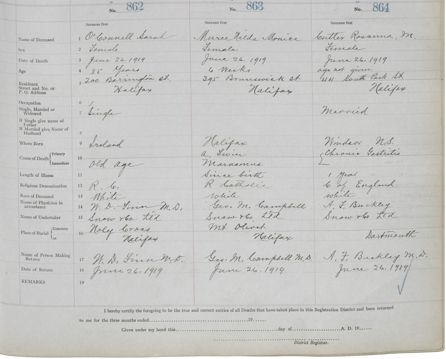 Death Registration: Year: 1919 book: 25 page: 144 number: 864