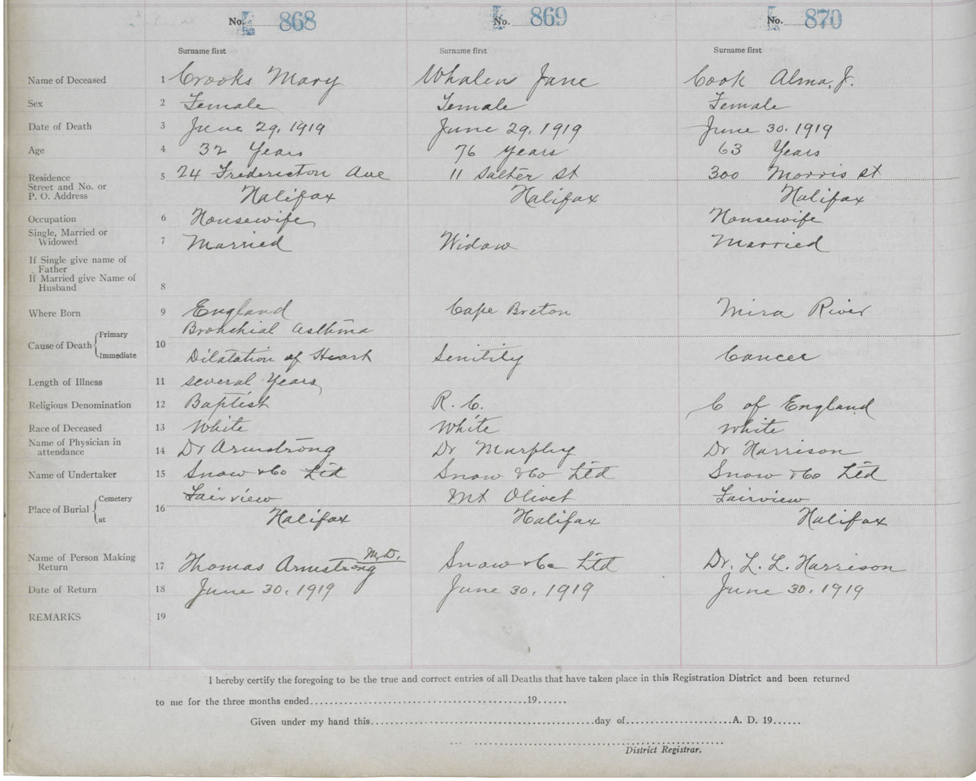 Death Registration: Year: 1919 book: 25 page: 145 number: 870