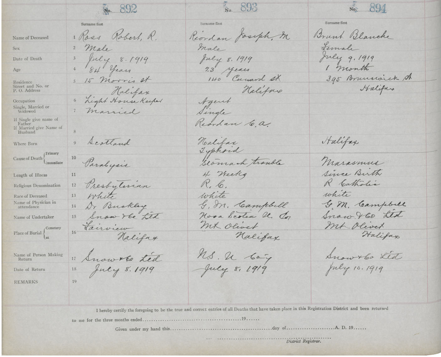 Death Registration: Year: 1919 book: 25 page: 149 number: 894
