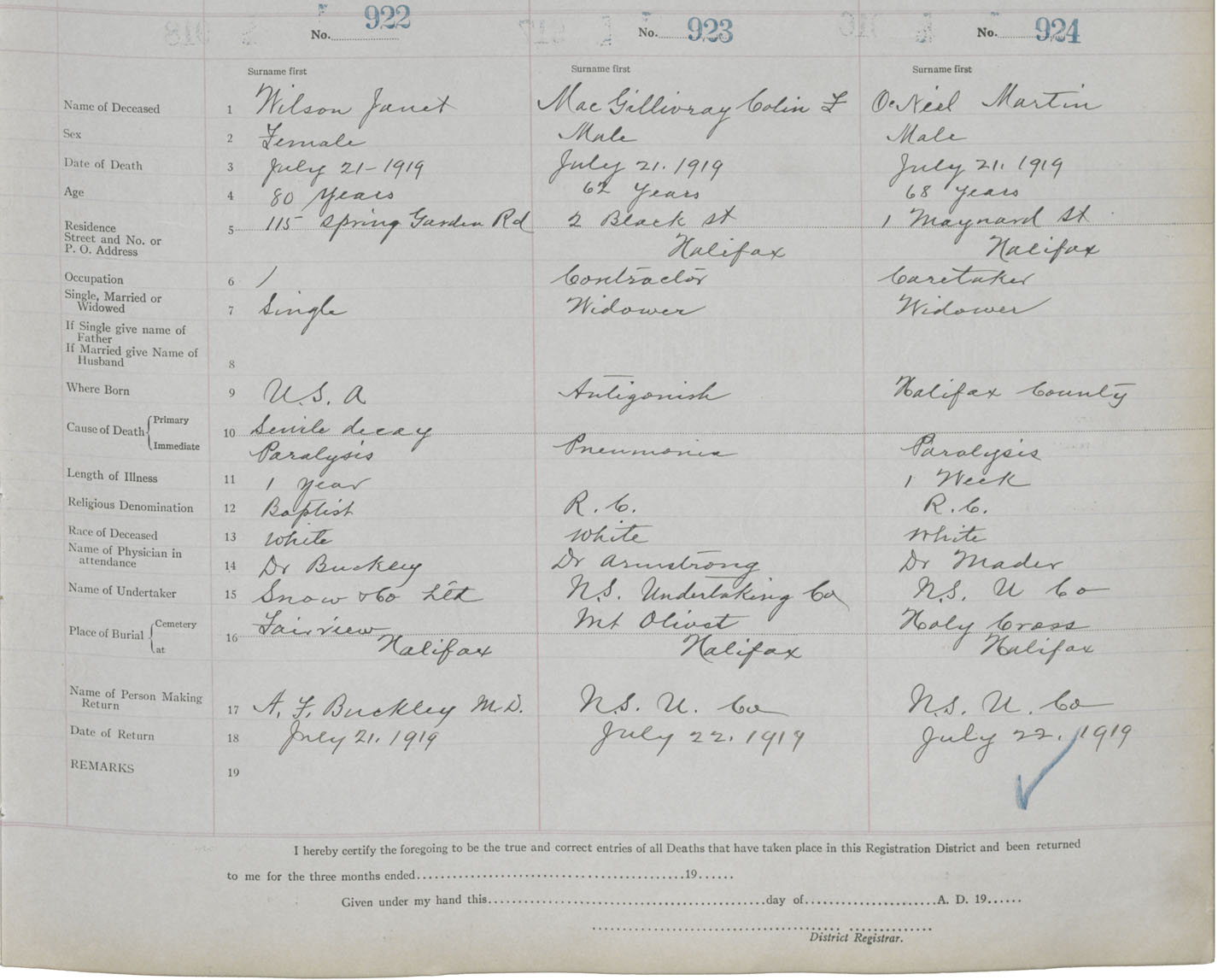 Death Registration: Year: 1919 book: 25 page: 154 number: 924