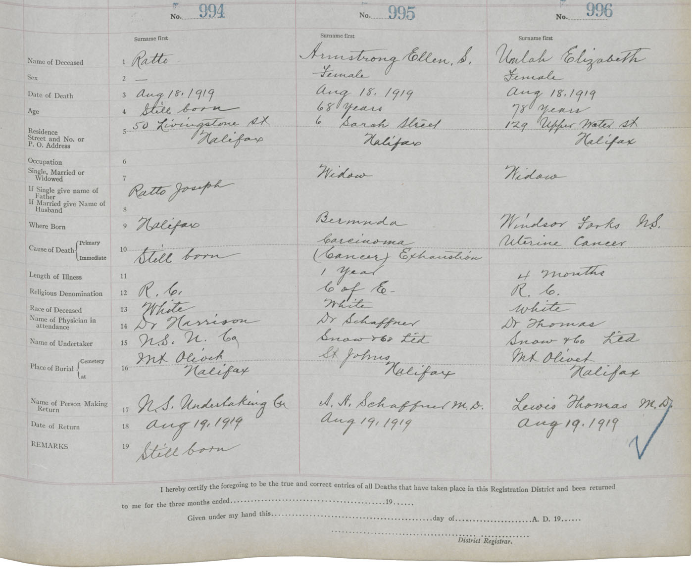 Death Registration: Year: 1919 book: 25 page: 166 number: 994