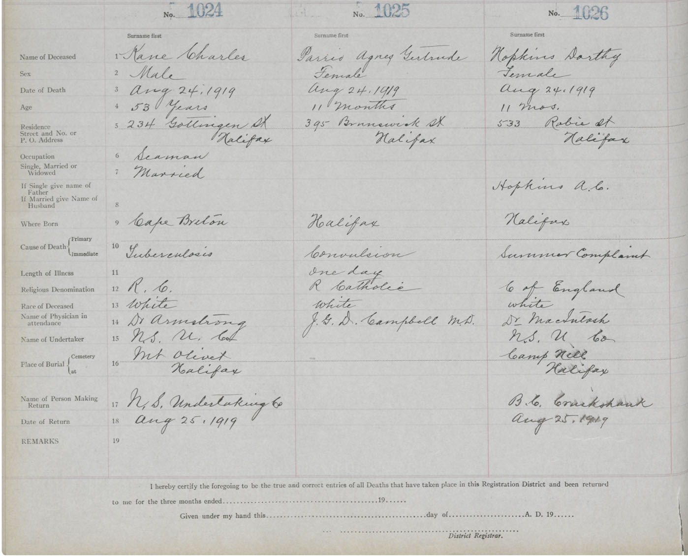 Death Registration: Year: 1919 book: 25 page: 171 number: 1024
