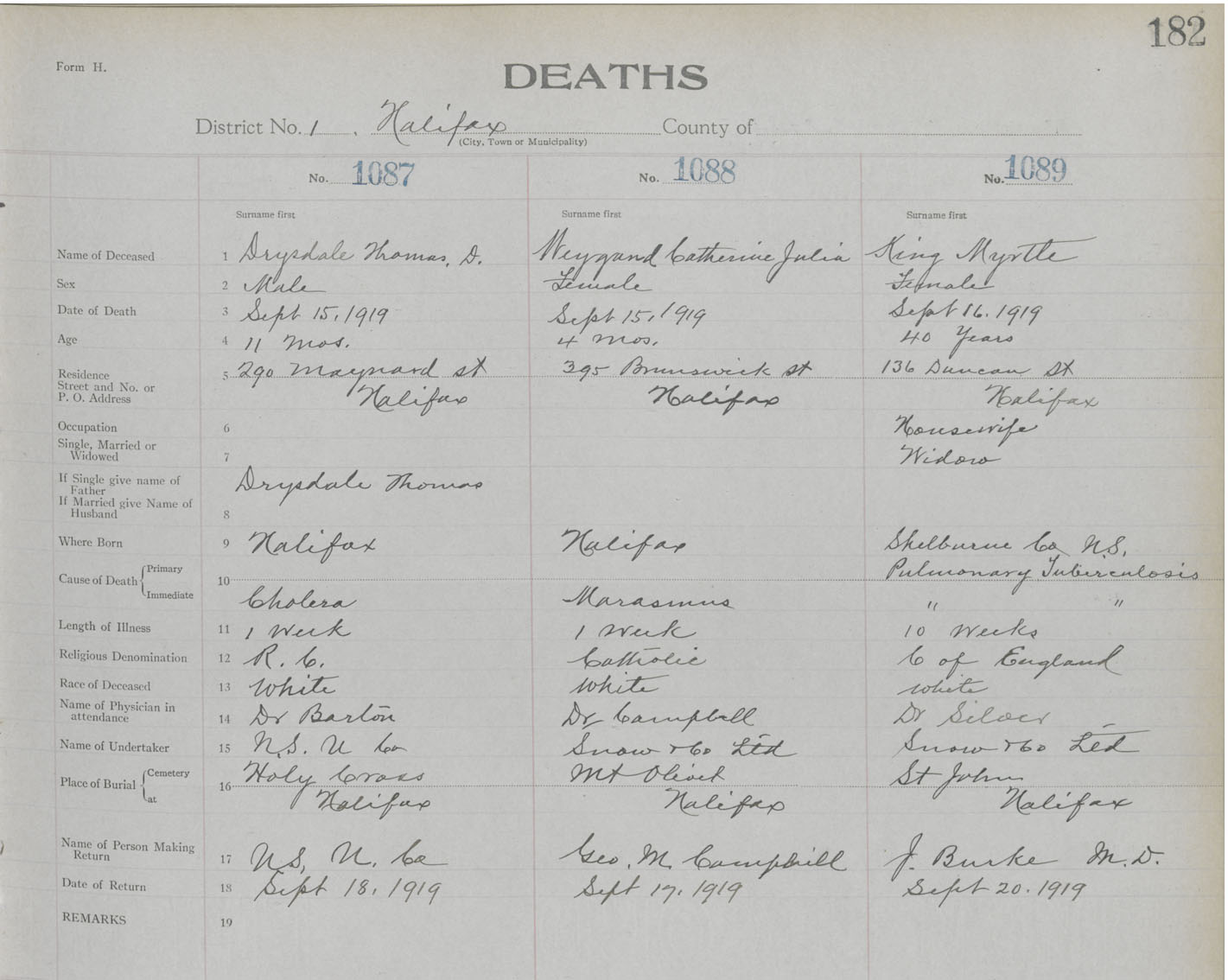Death Registration: Year: 1919 book: 25 page: 182 number: 1087