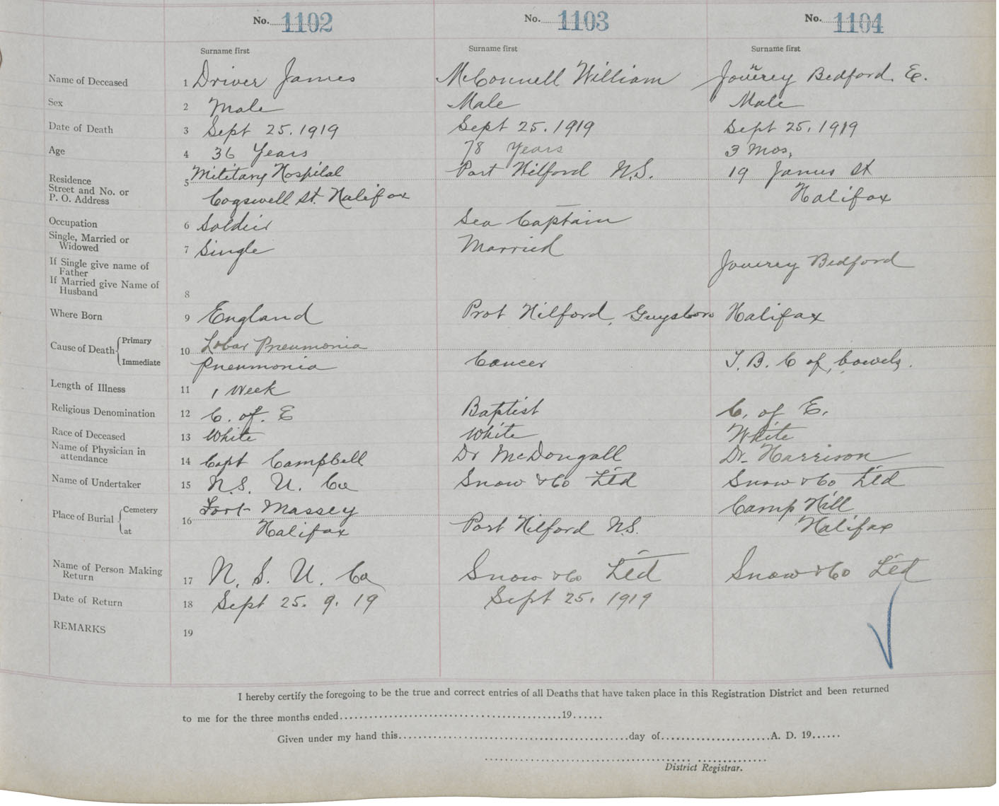 Death Registration: Year: 1919 book: 25 page: 184 number: 1102