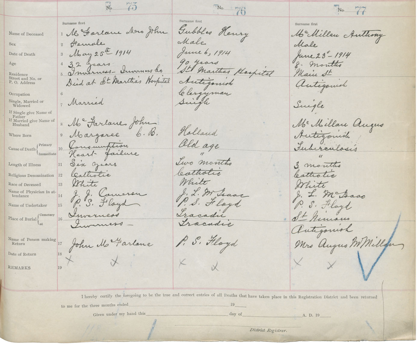 Female Death Registration: Year: 1914 book: 26 page: 29 number: 75