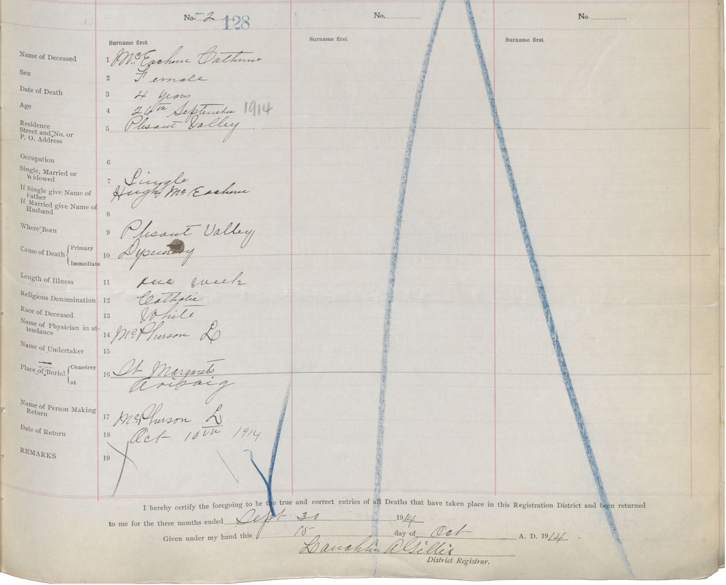 Female Death Registration: Year: 1914 book: 26 page: 51 number: 128