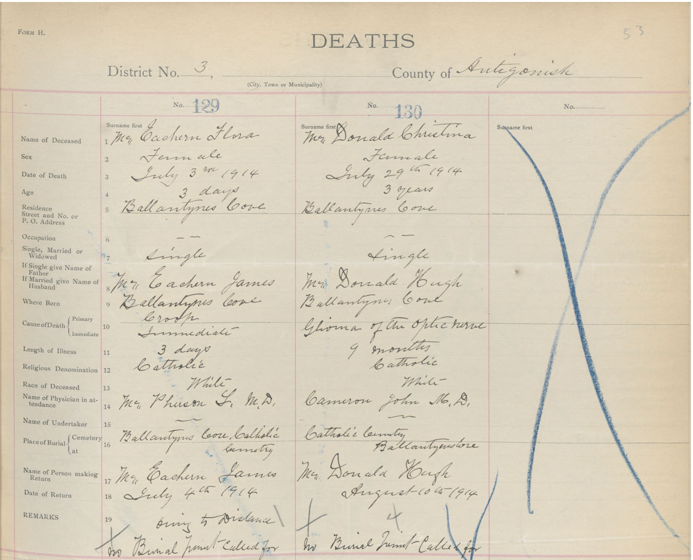 Female Death Registration: Year: 1914 book: 26 page: 53 number: 129