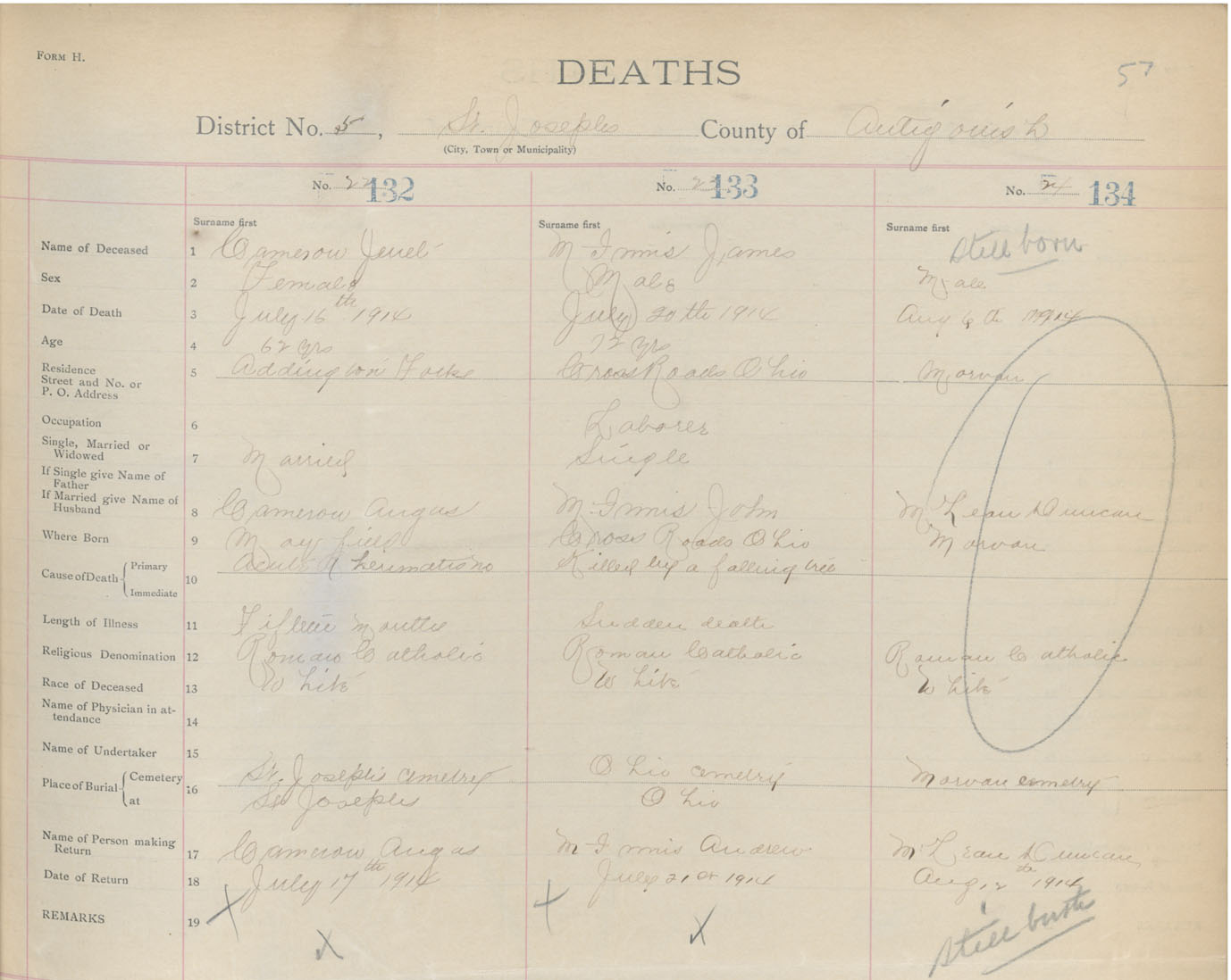Female Death Registration: Year: 1914 book: 26 page: 57 number: 132