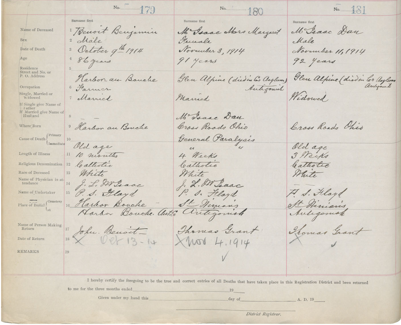 Male Death Registration: Year: 1914 book: 26 page: 78 number: 179