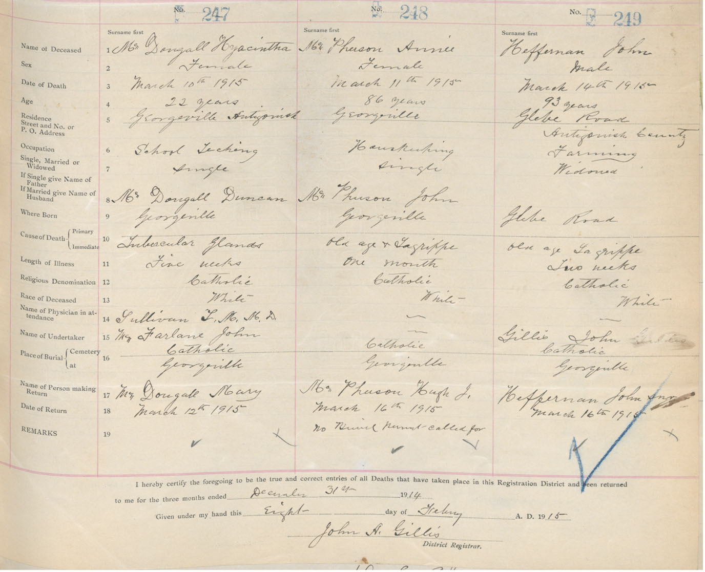 Male Death Registration: Year: 1915 book: 26 page: 111 number: 249
