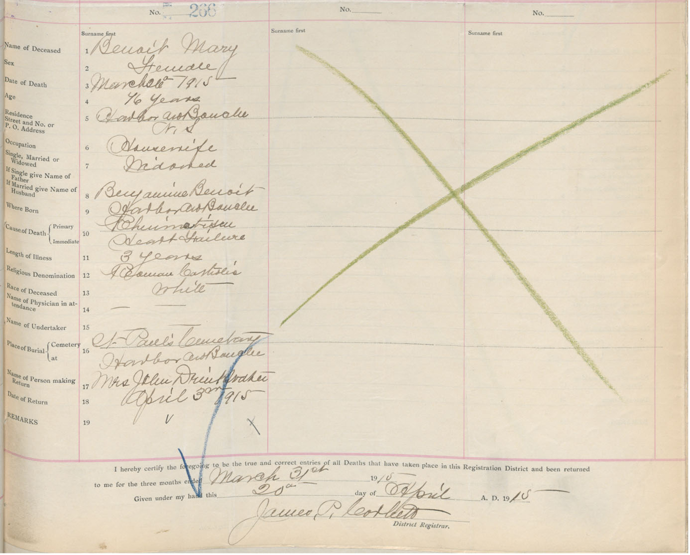 Female Death Registration: Year: 1915 book: 26 page: 123 number: 266