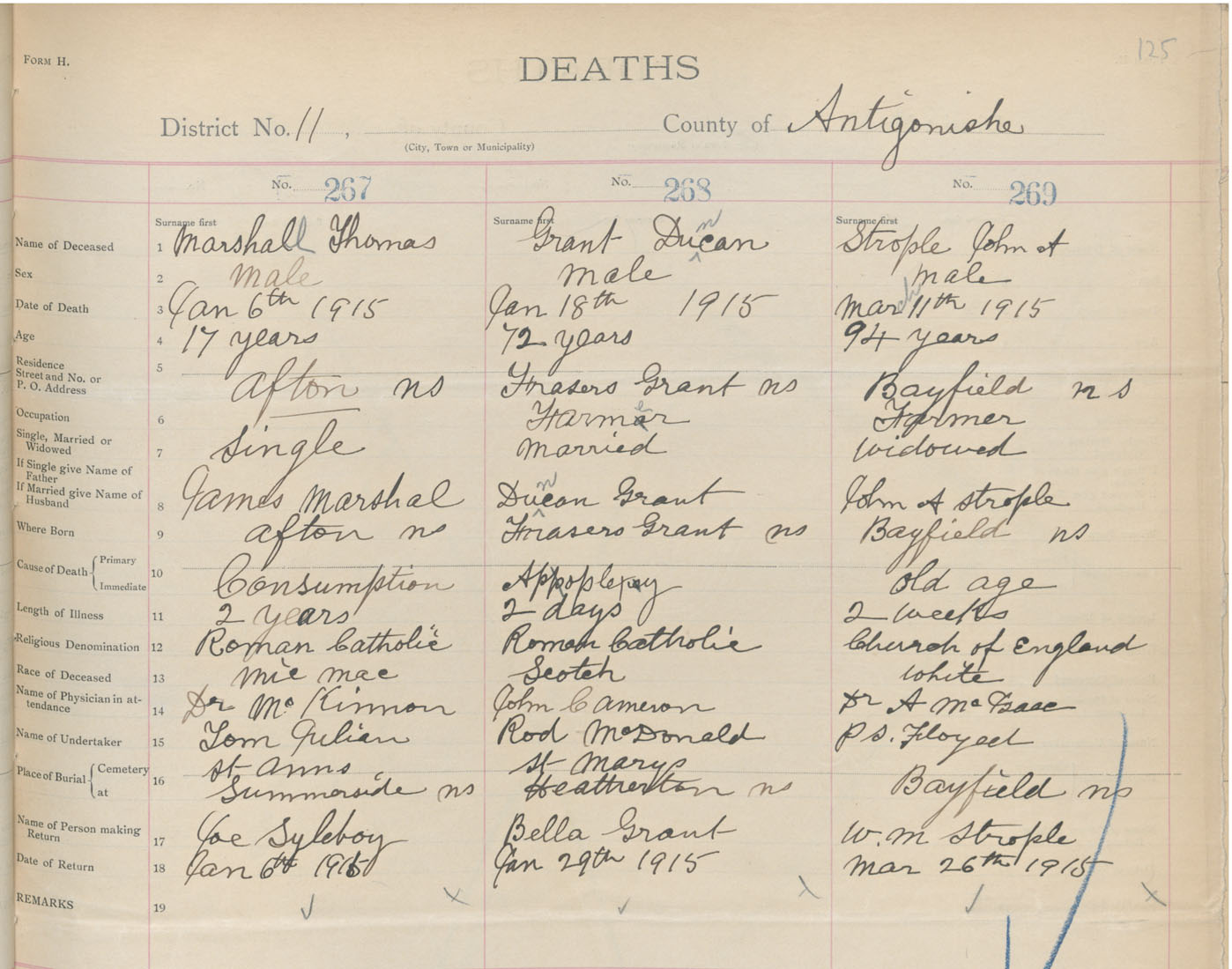 Male Death Registration: Year: 1915 book: 26 page: 125 number: 267