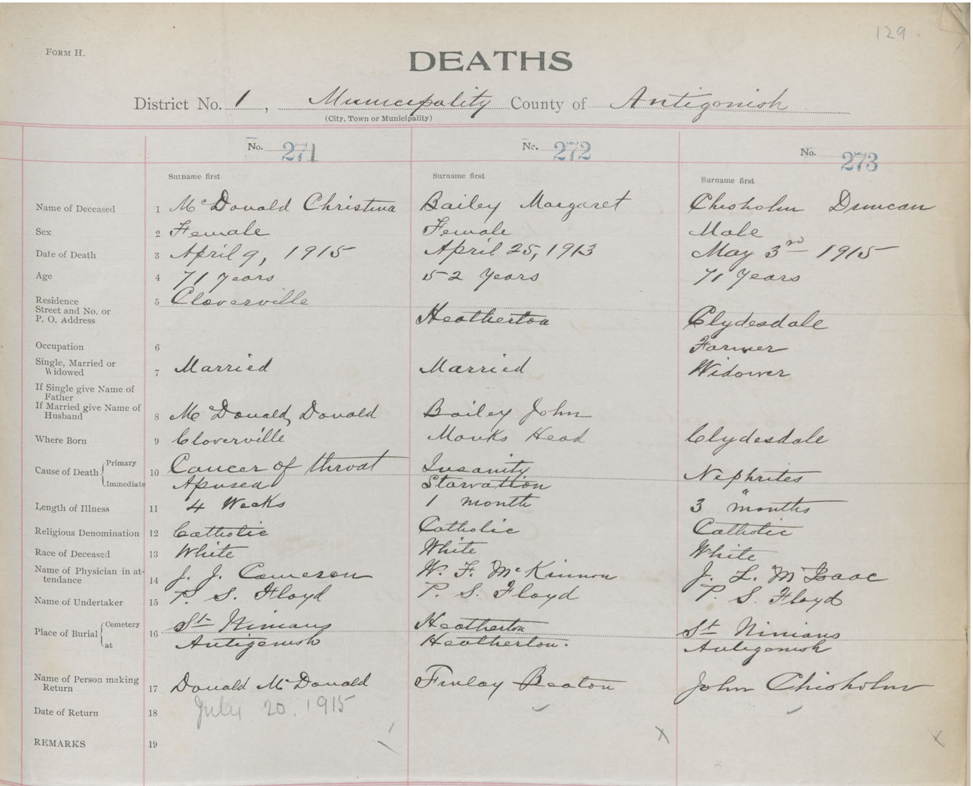 Female Death Registration: Year: 1915 book: 26 page: 129 number: 271