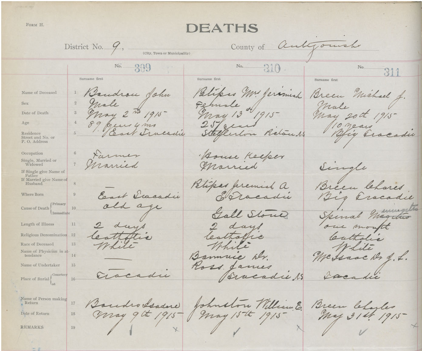 Male Death Registration: Year: 1915 book: 26 page: 144 number: 311
