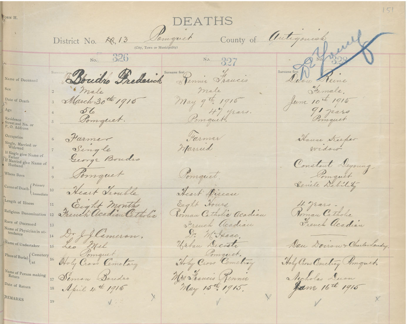 Male Death Registration: Year: 1913 book: 26 page: 151 number: 326