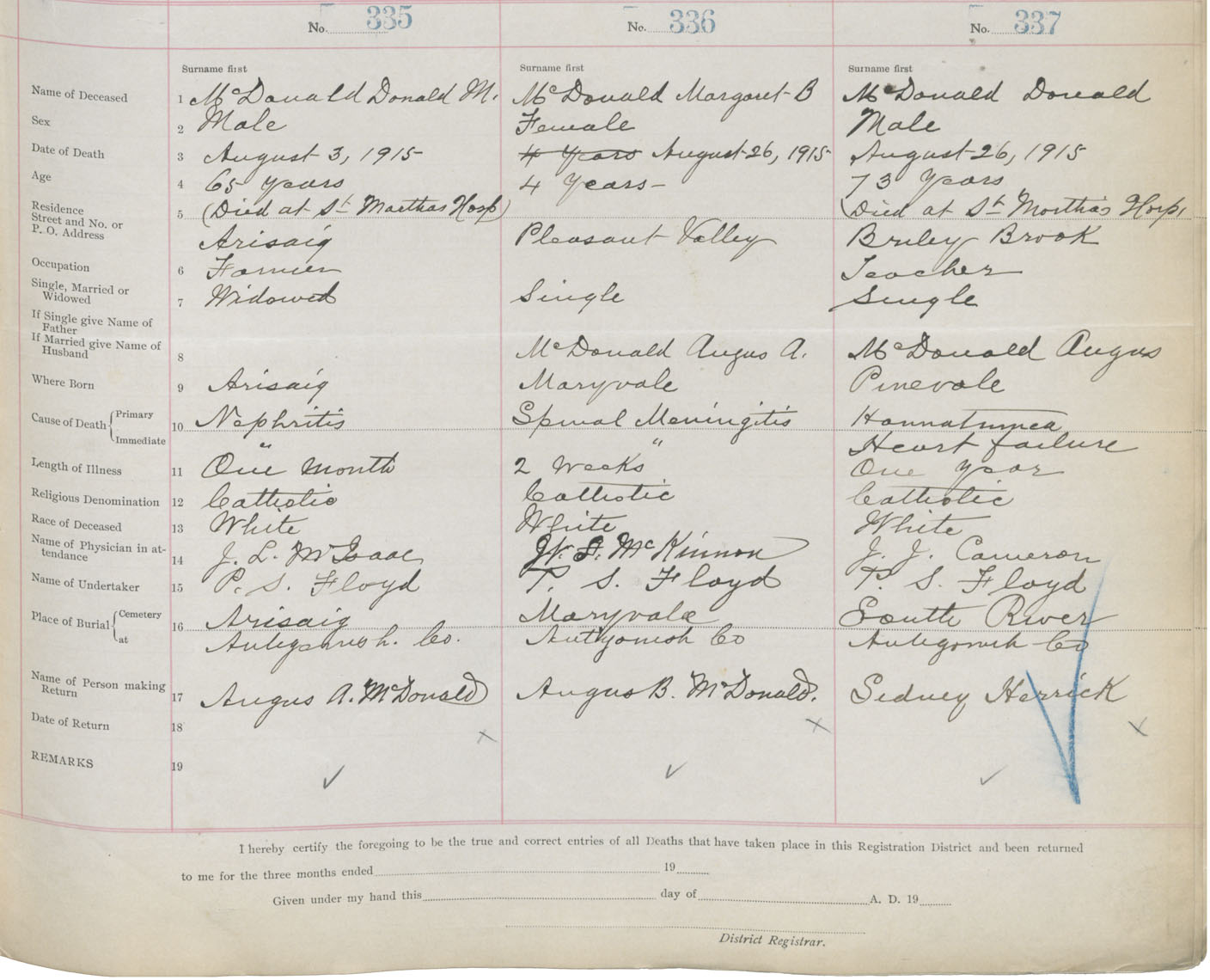 Male Death Registration: Year: 1915 book: 26 page: 153 number: 337