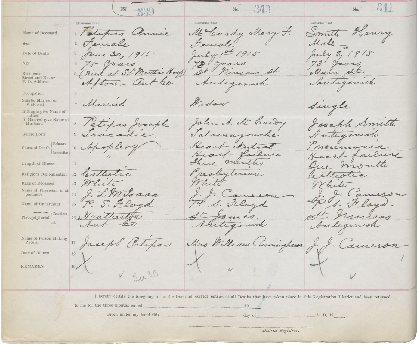 Male Death Registration: Year: 1915 book: 26 page: 154 number: 341