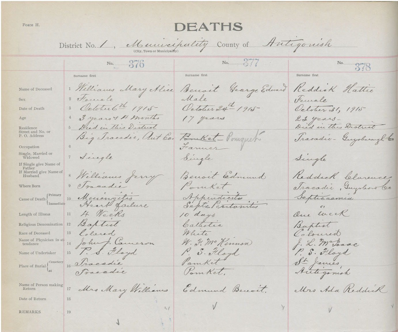 Death Registration: Year: 1915 book: 26 page: 178 number: 376