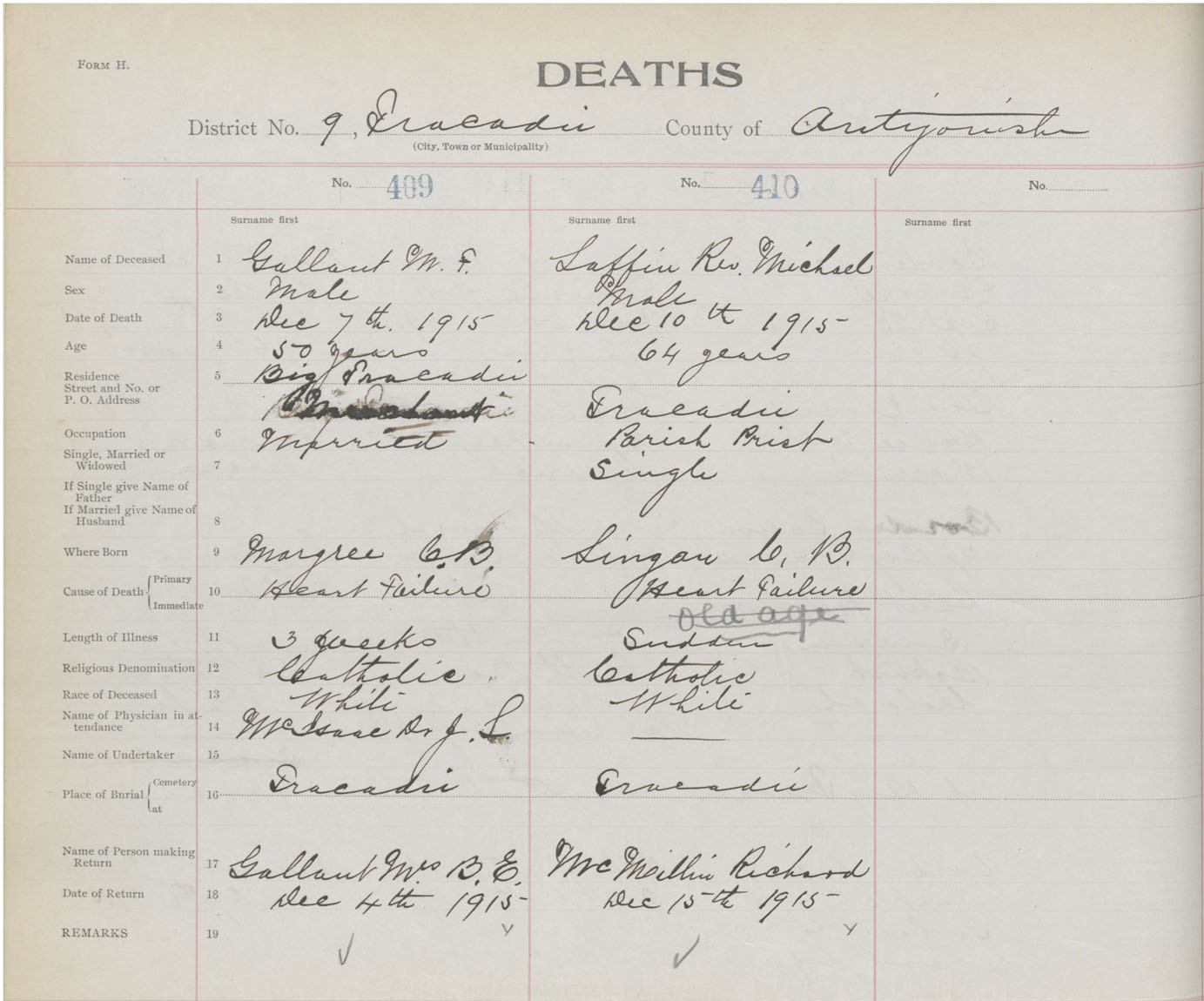 Male Death Registration: Year: 1915 book: 26 page: 196 number: 409
