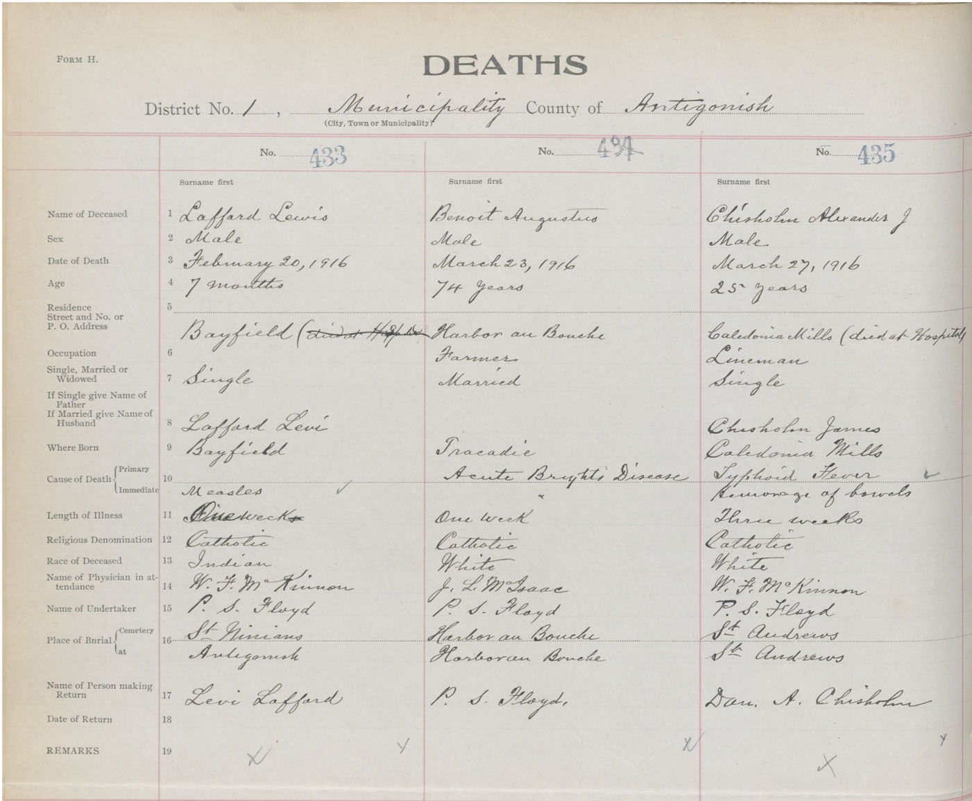 Male Death Registration: Year: 1916 book: 26 page: 206 number: 435