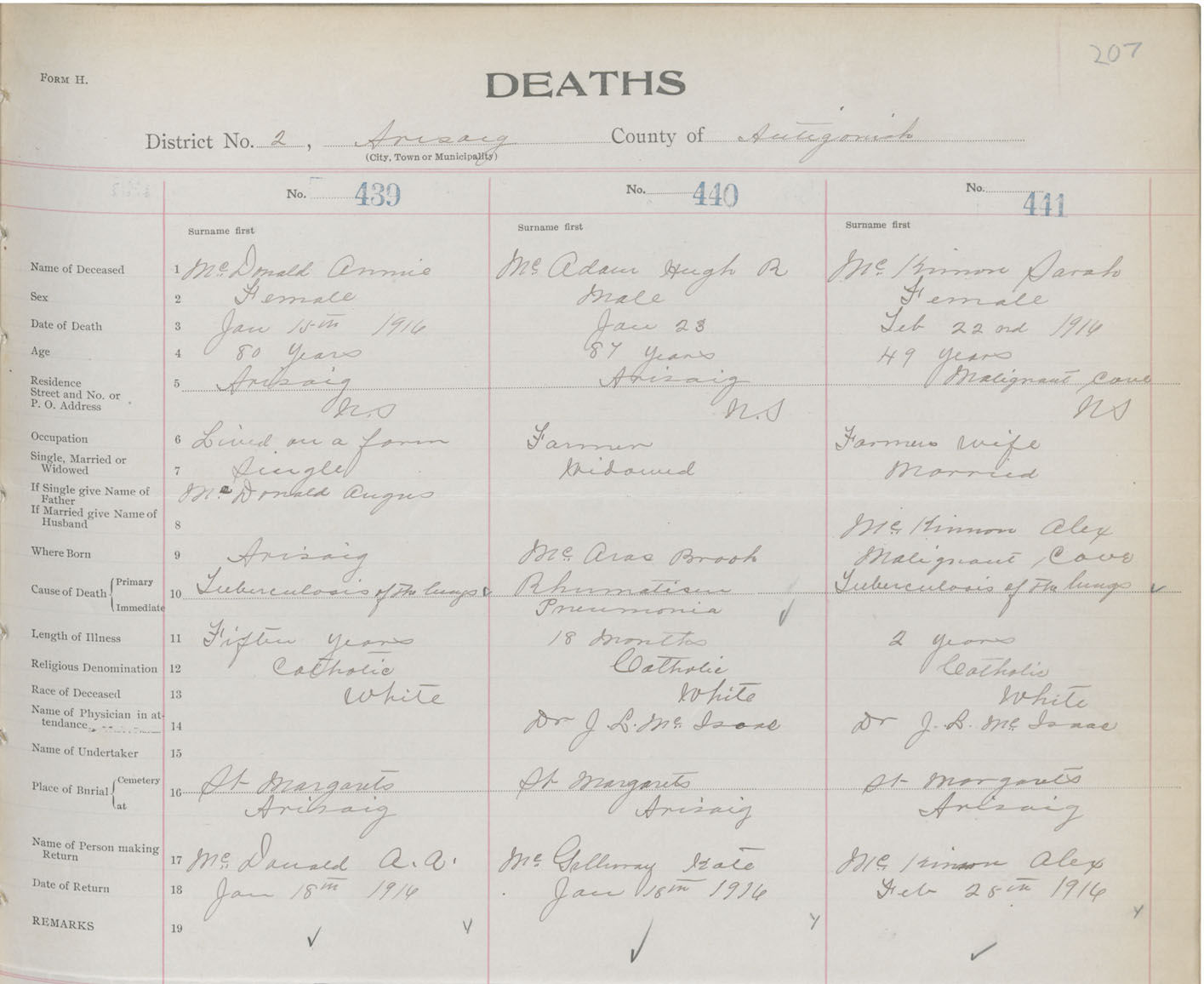 Female Death Registration: Year: 1916 book: 26 page: 207 number: 441