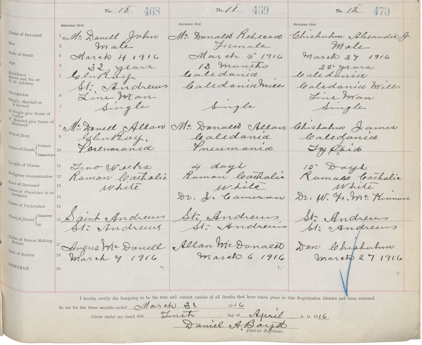 Male Death Registration: Year: 1916 book: 26 page: 221 number: 470