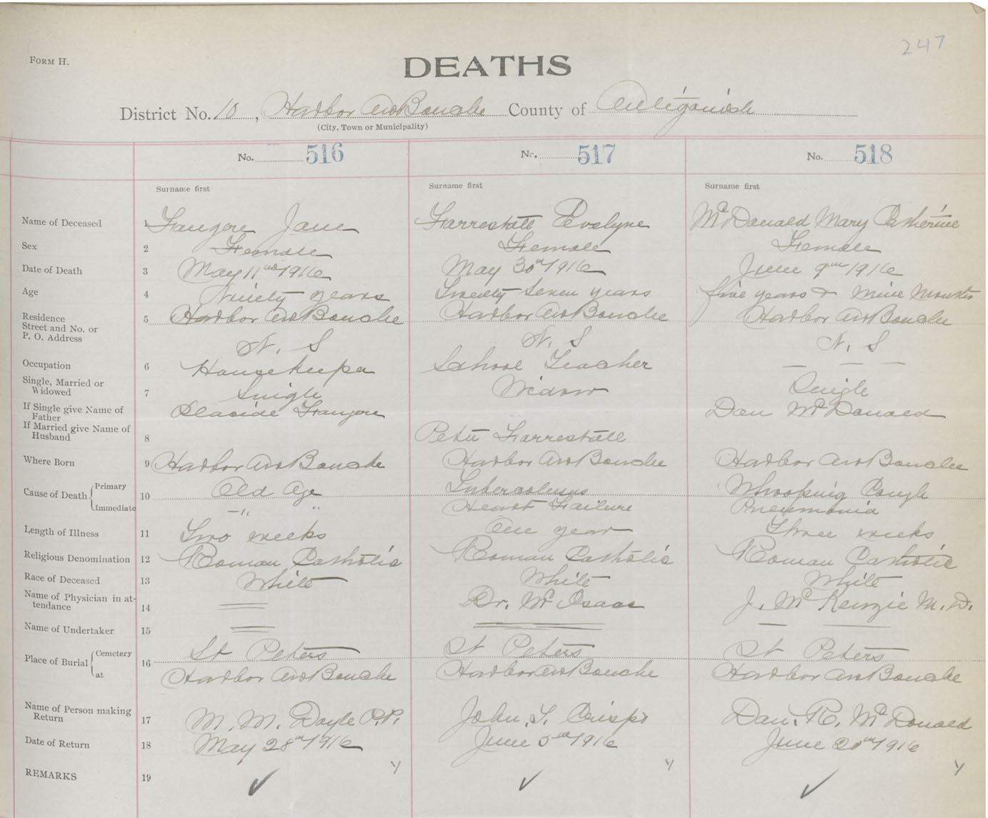 Female Death Registration: Year: 1916 book: 26 page: 247 number: 516