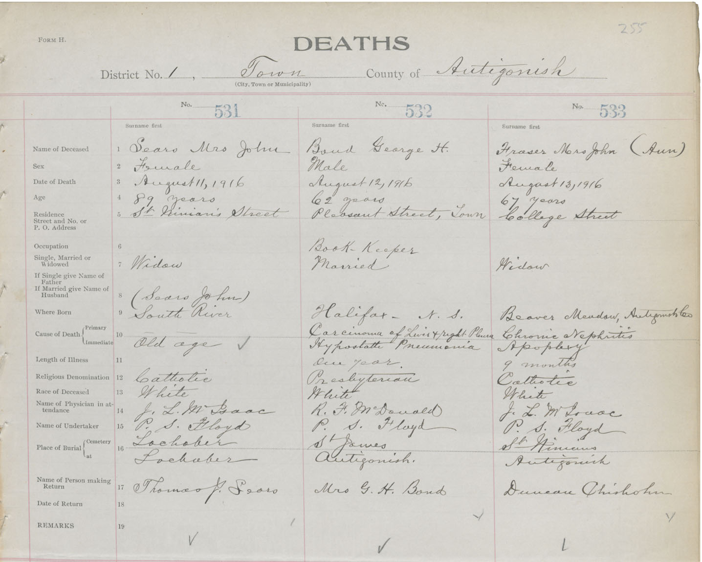 Female Death Registration: Year: 1916 book: 26 page: 255 number: 531