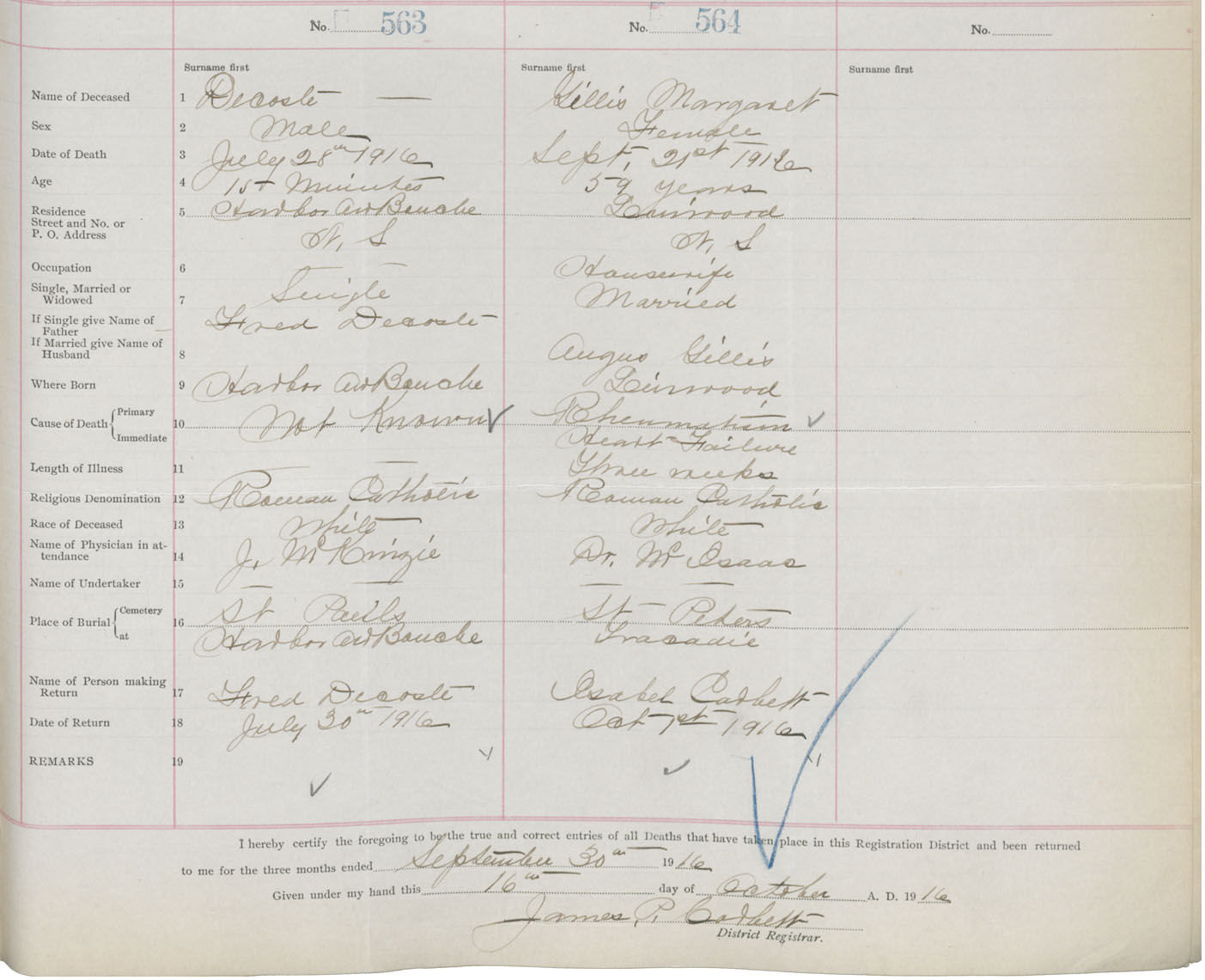 Male Death Registration: Year: 1916 book: 26 page: 269 number: 563