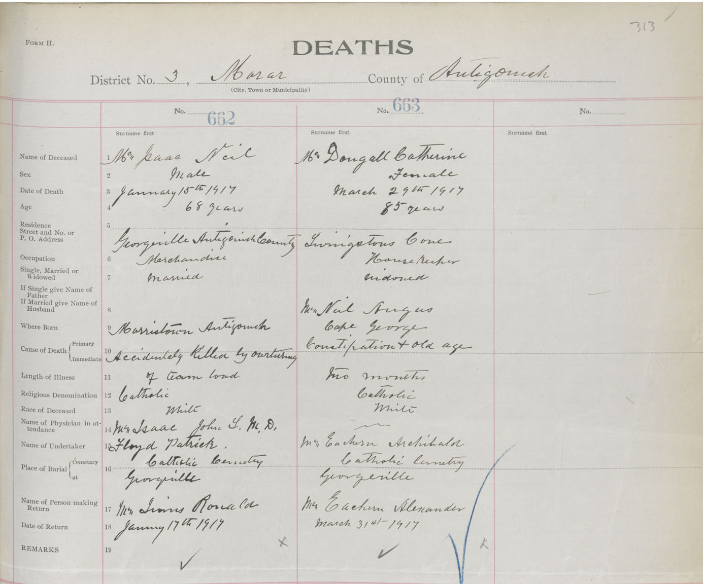 Male Death Registration: Year: 1917 book: 26 page: 313 number: 662